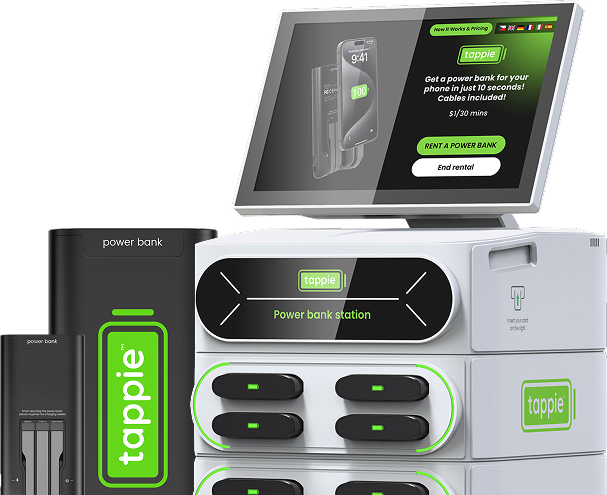 Het Tappie™ powerbank station is een handige oplossing voor gasten die hun telefoon willen opladen. Deze slimme innovatie vind je al bij meer dan 300 horecalocaties in Nederland.